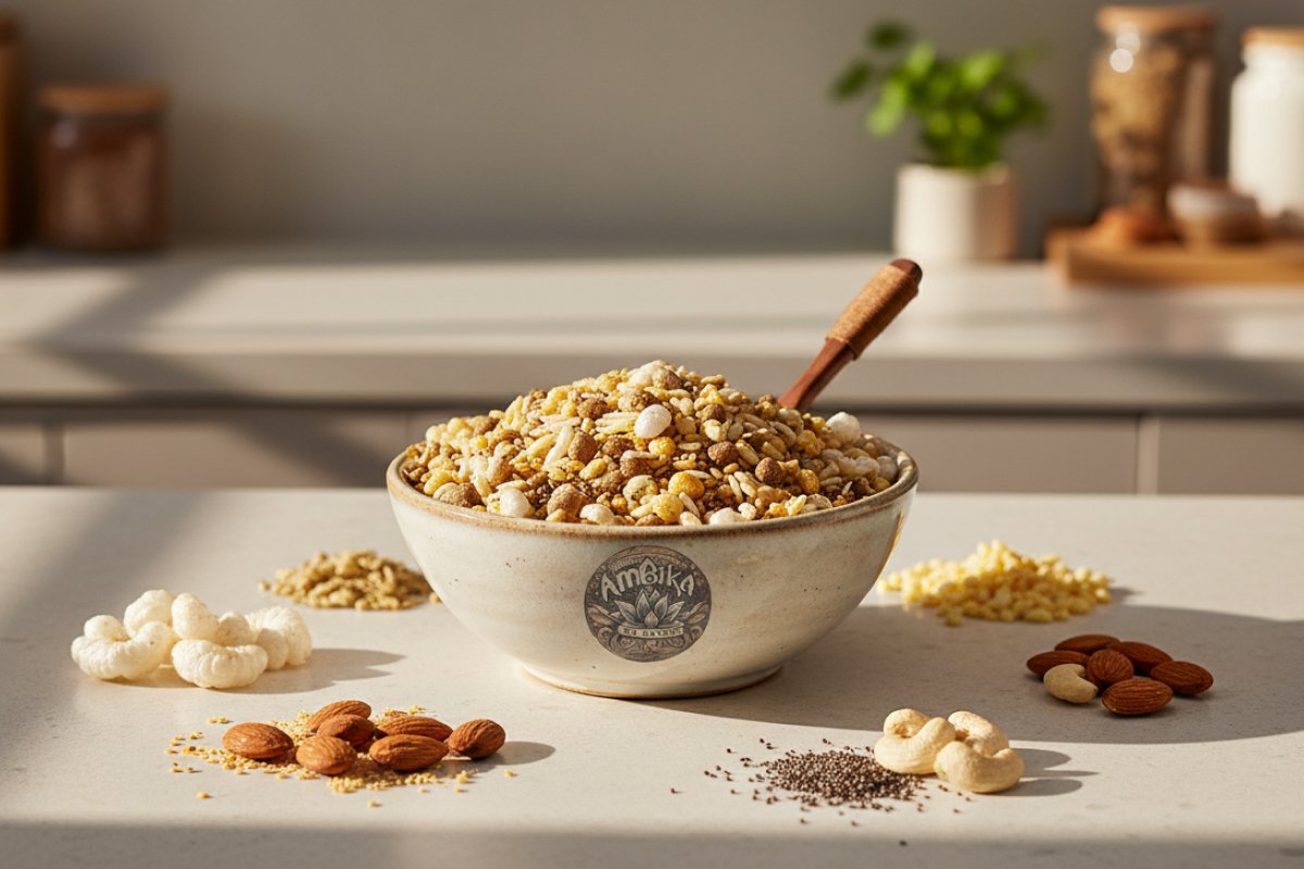 Ambika Diet Mix is a healthy, nutritious blend made from carefully selected grains, pulses, and seeds to support a balanced diet and active lifestyle. Rich in fiber, protein, and essential nutrients, this mix helps improve digestion, boost energy levels, and keep you feeling full for longer. Easy to prepare and light on the stomach, it is ideal for weight management, daily nutrition, and all age groups. Made with natural ingredients and no preservatives, Ambika Diet Mix is a perfect choice for a healthy meal or breakfast option.
